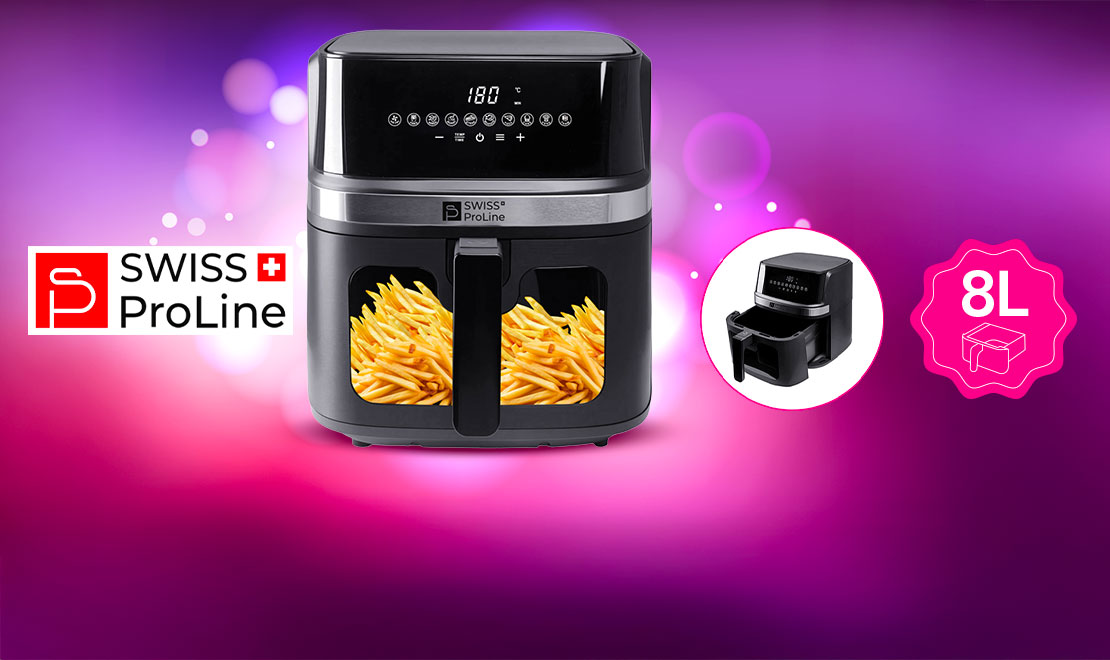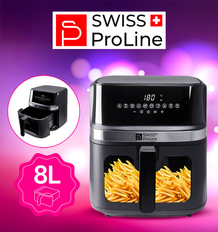 Redécouvrez la cuisine maison avec la Friteuse à air chaud Air Fryer 8L (sans huile) Swiss ProLine : moderne, pratique et design, elle vous permet de préparer des repas délicieux et plus sains au quotidien.