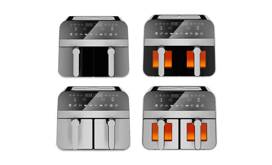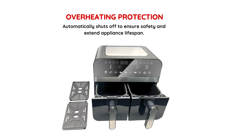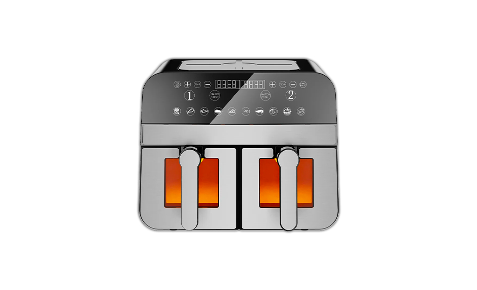 Que vous prépariez des plats principaux et des accompagnements ensemble ou deux types de repas différents, cette friteuse à air vous fait gagner du temps et simplifie le processus de cuisson, ce qui permet d'obtenir facilement des résultats parfaitement cuits sans mélanger les saveurs ni nécessiter plusieurs appareils.