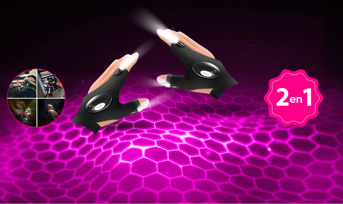 - Flash DEALS - Gants LED 2en1 pratique avec lumière intégrée avec 60% de rabais