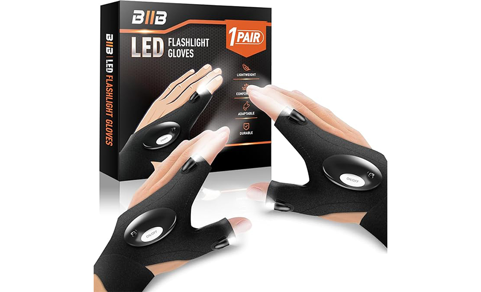 Gants de lampe de poche BIIB avec un design sans doigts, laissez les mains ressentir les sensations les plus réelles pour un fonctionnement plus précis.