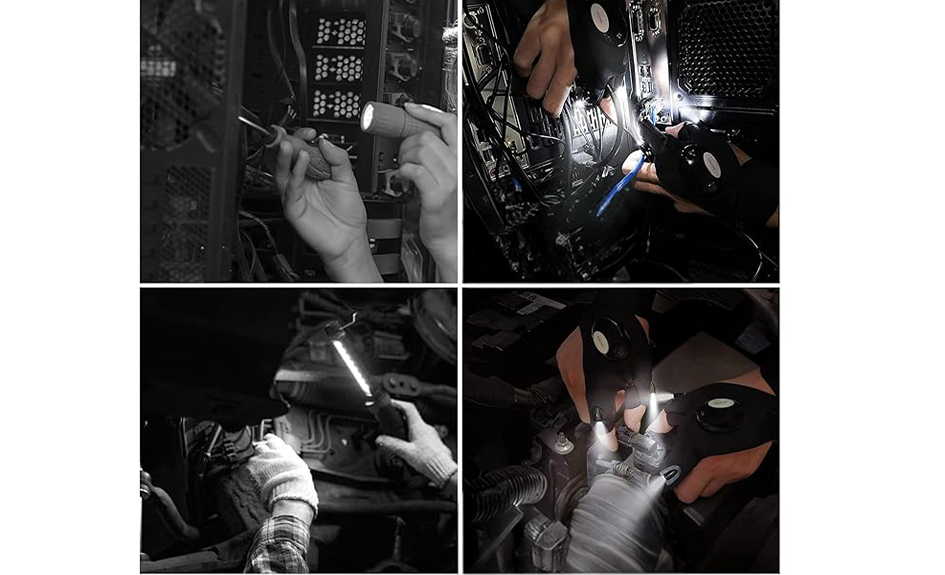 Avec cette paire de gants LED imperméables, vous n'avez plus à vous soucier de la pêche, de la réparation de voiture, du camping, réparation de conduites d'eau, réparation d'électricité et autres choses.