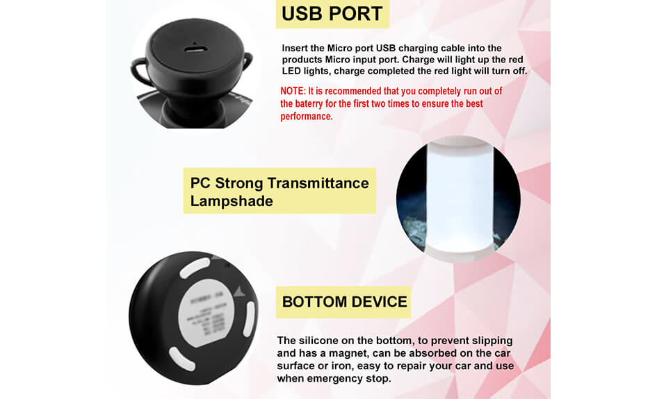 Illuminez dans la voiture, dans le coffre ou hors de la voiture pendant la nuit.