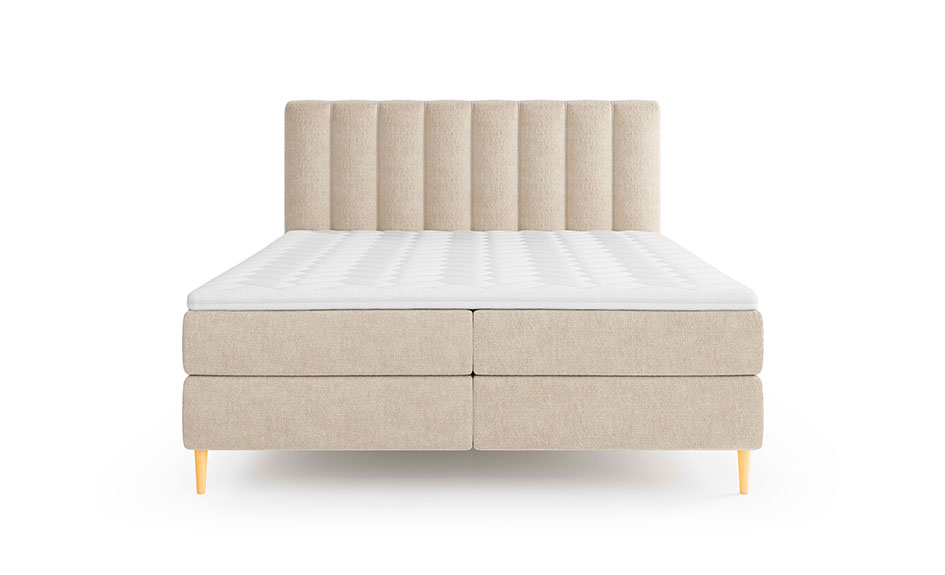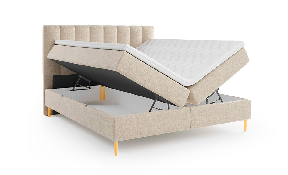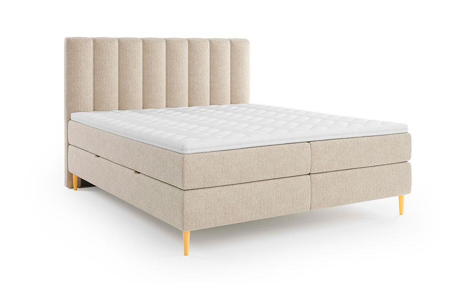 Lit Boxspring complet avec Coffre, Surmatelas et Matelas à mémoire de forme inclus - Beige - BEDREPUBLIC