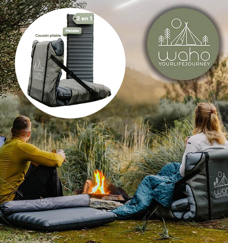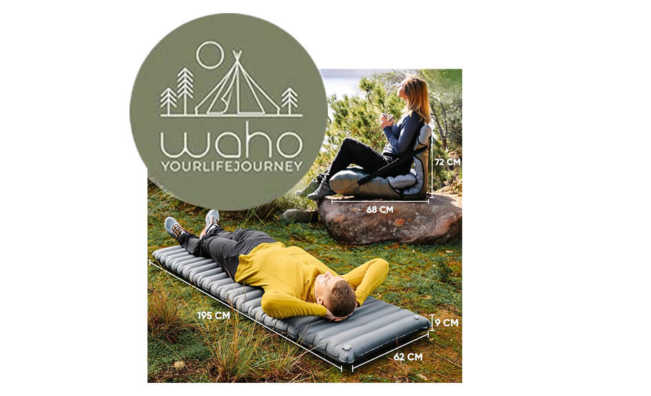 Avec Waho, vous obtenez non seulement un tapis isolant ultra léger, mais vous pouvez également le transformer en un coussin avec dossier grâce à la technologie AirFlex.