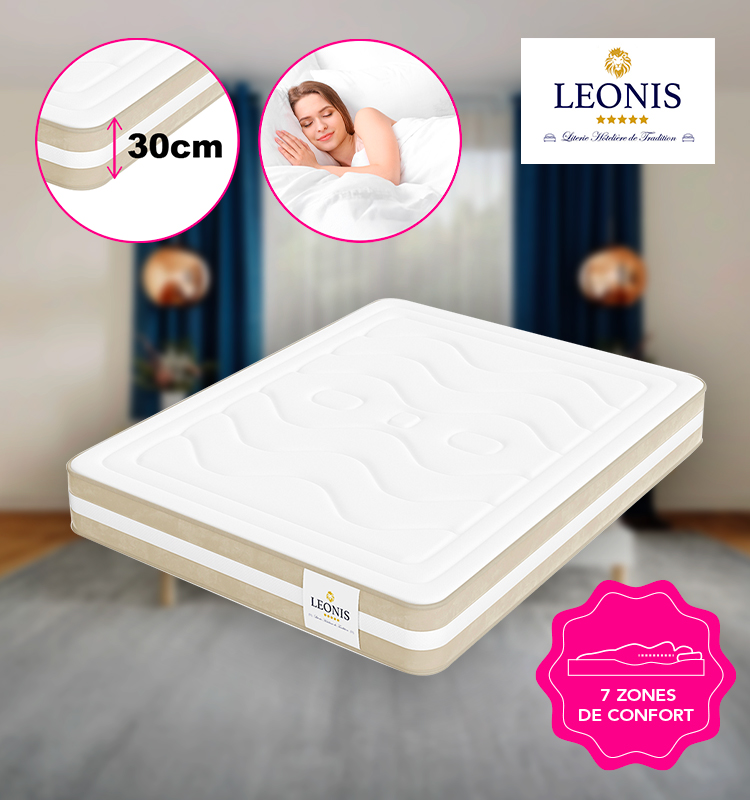Matelas Gamma avec mousse à mémoire de forme - épaisseur 30cm - LEONIS