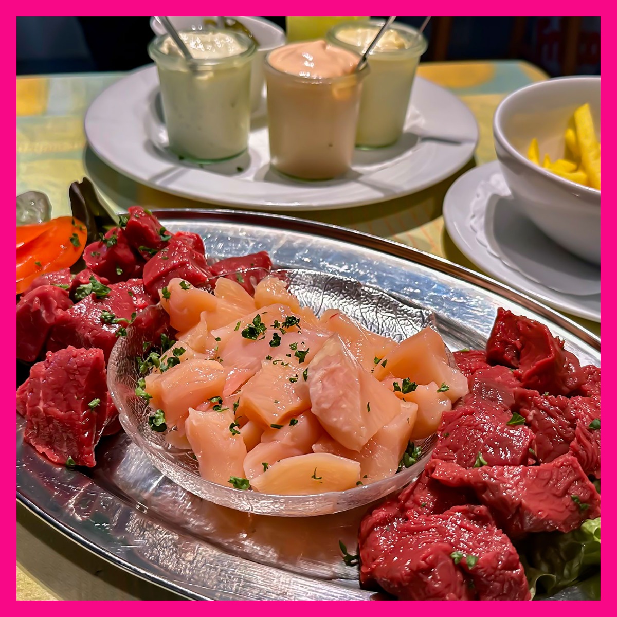 Plat: Fondue Chinoise de 250g par personne avec frites et sauces