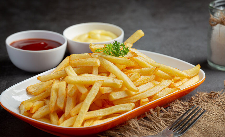 Plat: Steak de cheval sauce à l’ail avec frites, riz ou pâtes et légumes