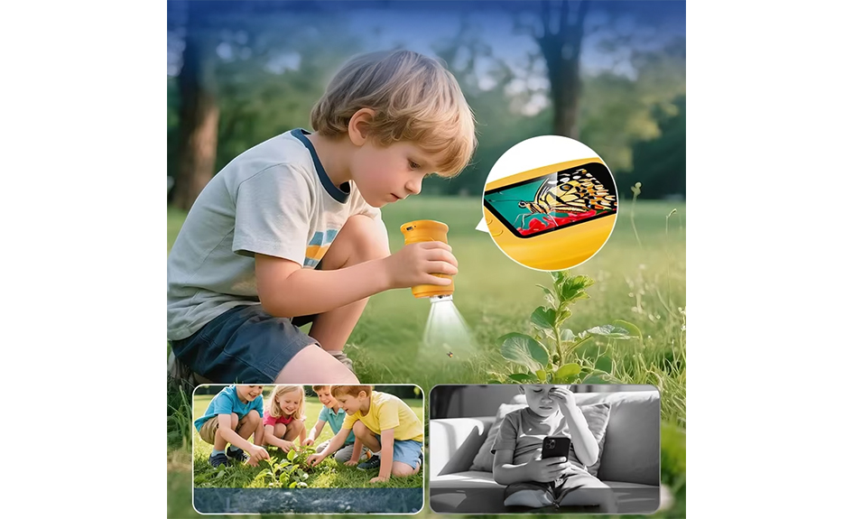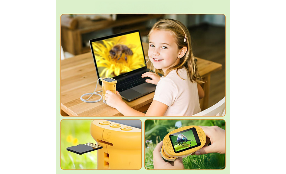 Émerveillez votre enfant avec le microscope numérique ! Idéal dès 3 ans, il permet d’explorer insectes, plantes, textiles et bien plus grâce à son grossissement jusqu’à 1000×.