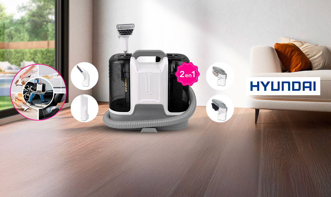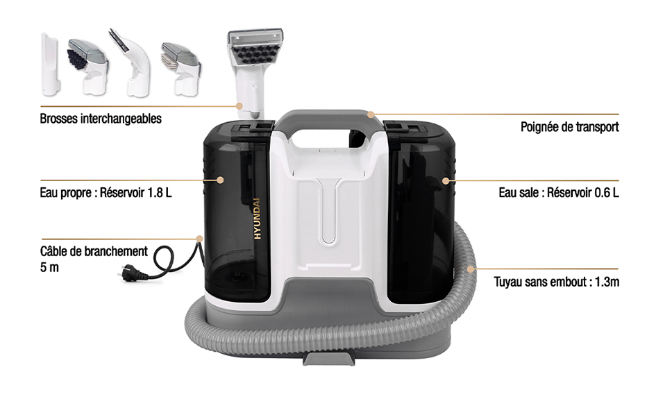 - Nettoyeur-détacheur à eau 2en1 avec 5 brosses inclus HYUNDAI avec 60% de rabais