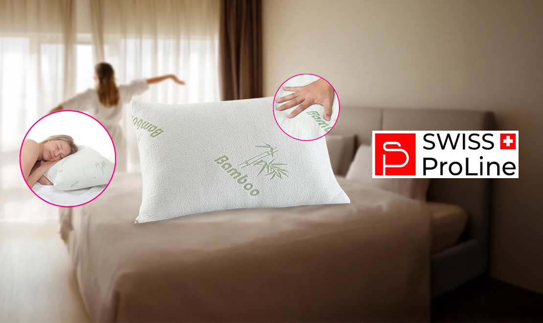 - Flash DEALS - Oreiller de Luxe en Bambou avec mousse à mémoire de forme Swiss ProLine avec 75% de rabais