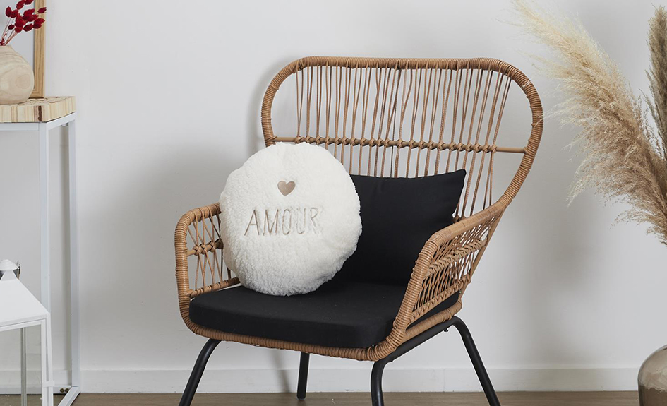 - Coussin déco avec broderie qui se transforme en une couverture idéale pour se lover sur le canapé