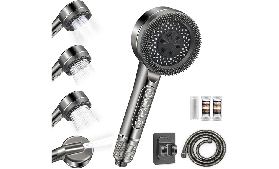 Ce pommeau de douche haute pression possède 4 modes de jet et un système de filtration intégré pour une eau plus propre et plus douce pour la peau.