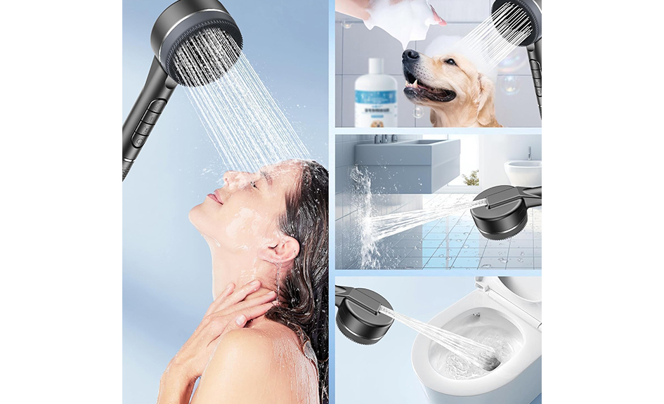 - Flash DEALS - Pommeau de douche avec 4 modes puissants (tuyau de douche et support inclus) avec 75% de rabais