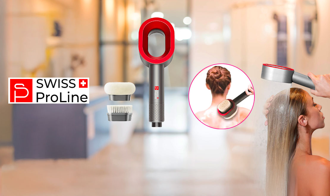 Pommeau de douche magnétique 3en1 (Soin purifiant, brosse nettoyante, brosse relaxante) Swiss ProLine
