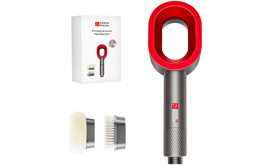 - Flash DEALS - Pommeau de douche magnétique 3en1 (Soin purifiant, brosse nettoyante, brosse relaxante) Swiss ProLine avec 73% de rabais