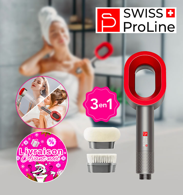 - Flash DEALS - Pommeau de douche magnétique 3en1 (Soin purifiant, brosse nettoyante, brosse relaxante) Swiss ProLine avec 73% de rabais