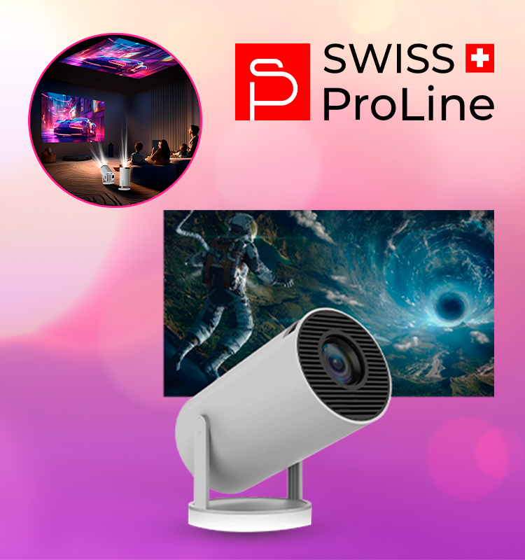 Facile à installer et à utiliser, le projecteur portable 4K SWISS ProLine est le compagnon idéal pour vos soirées entre amis, vos présentations professionnelles ou vos séances de cinéma en famille.