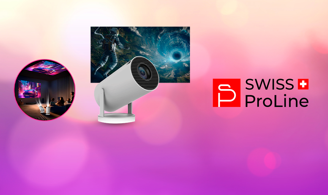 Découvrez le projecteur portable 4K SWISS ProLine, votre solution ultime pour des soirées cinéma où que vous soyez.