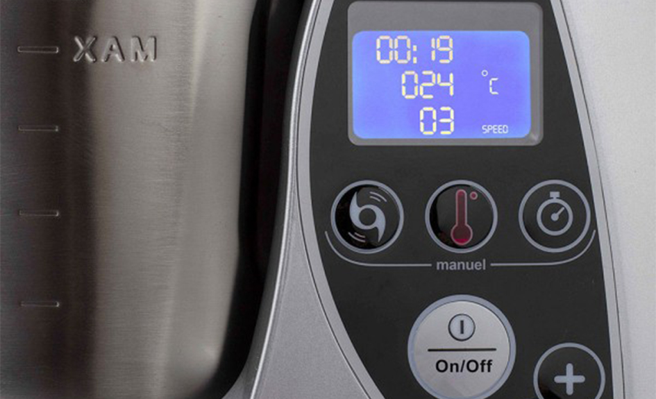 Le robot culinaire chauffant se règle directement depuis l’écran LCD pour une lecture visible des informations.