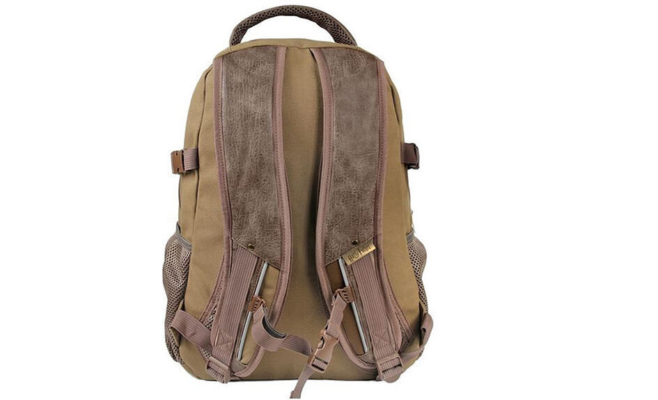 Sur le dessus du sac à dos, vous trouverez une poignée robuste. Les bretelles du sac à dos sont réglables et également avec rembourrage.