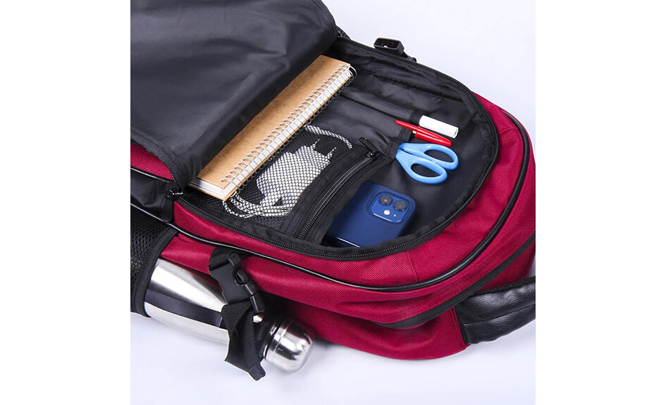 Le compartiment principal du sac à dos Harry Potter se ferme au moyen d’une fermeture éclair et la poche avant se ferme au moyen de velcro.
