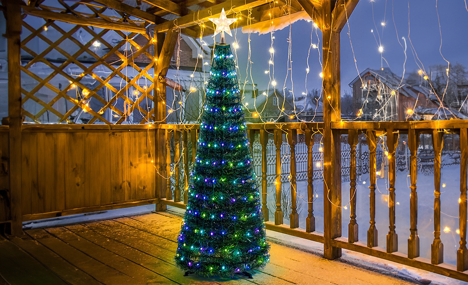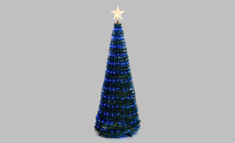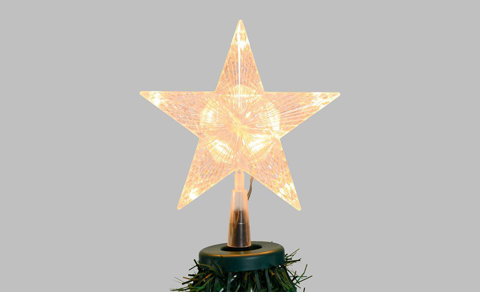 Équipé d'un cimier lumineux en forme d'étoile, ce sapin occupe peu d'espace tout en offrant une présence remarquable.