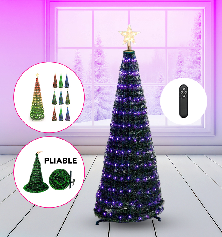 Avec des effets lumineux captivants et un contrôleur proposant 18 fonctions et 6 couleurs, ce sapin est idéal pour divers événements.