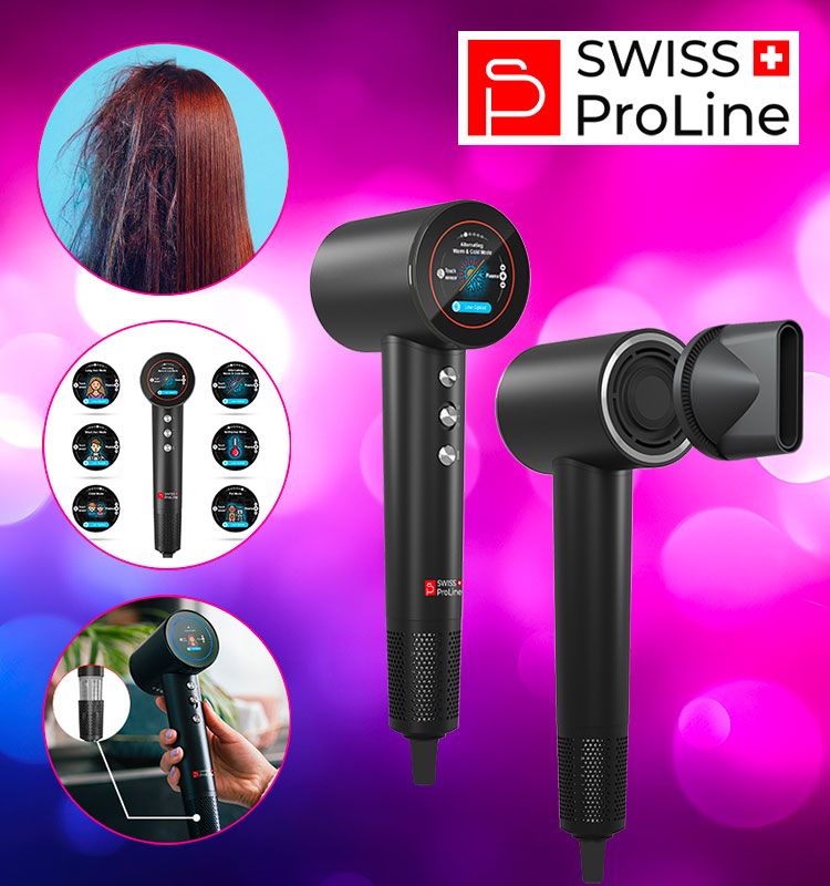 - Flash DEALS - Sèche-cheveux ionique plasma avec écran LED tactile Swiss ProLine avec 77% de rabais