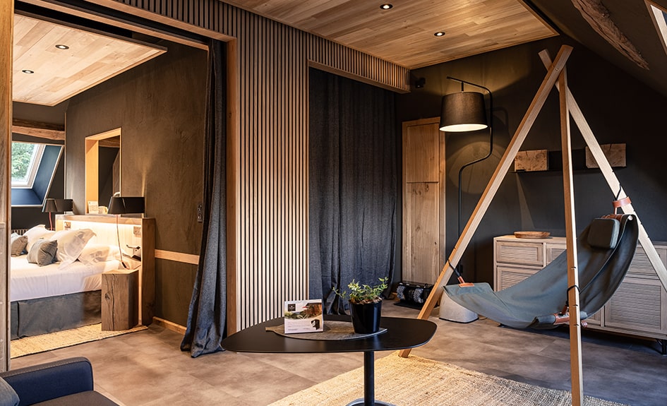 Peuplier, chêne, acacia, lin, laine et pierres naturelles se mêlent pour une atmosphère chic et cosy, au côté d’équipements contemporains pour un séjour tout confort...