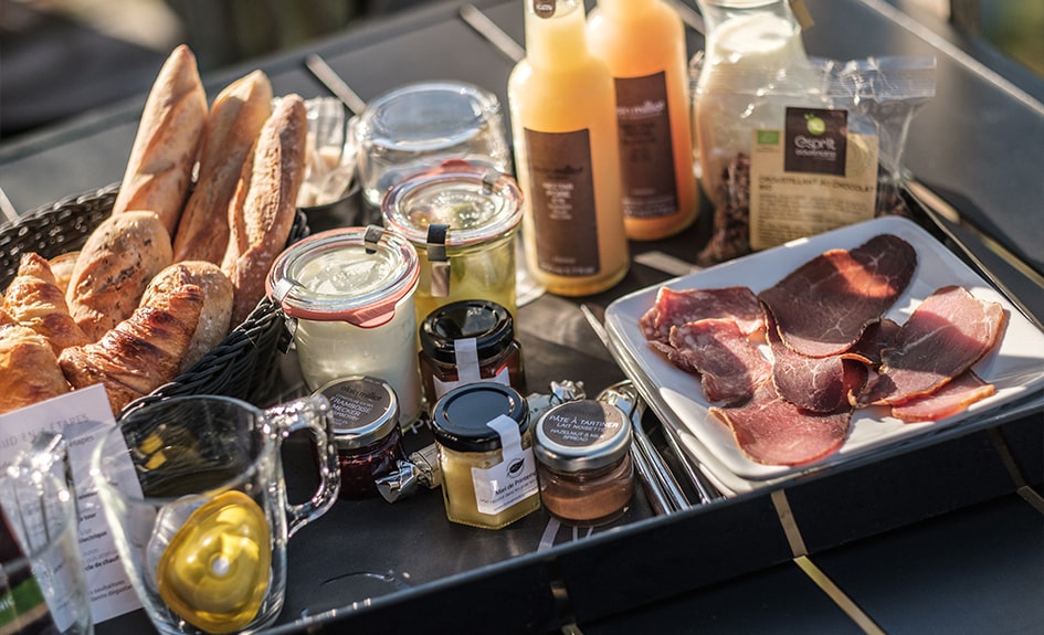 Au réveil, laissez-vous enchanter par un petit-déjeuner gourmand servi en chambre, composé avec des produits Bio & Terroir.