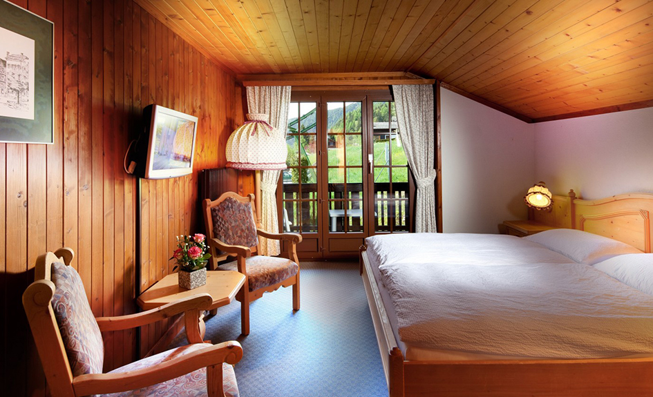 Profitez de l'ambiance reposante d'un véritable chalet suisse avec une de ces charmantes chambres doubles conçues pour votre confort, télévision à écran plat, Wifi et salle de bain privée.
