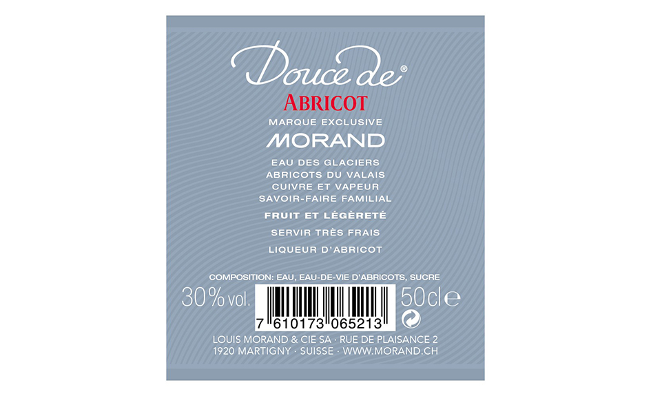 Liqueur d’abricots du Valais AOC de haute qualité, au nez typique du fruit et au goût riche, complexe, long en bouche et bien équilibré.