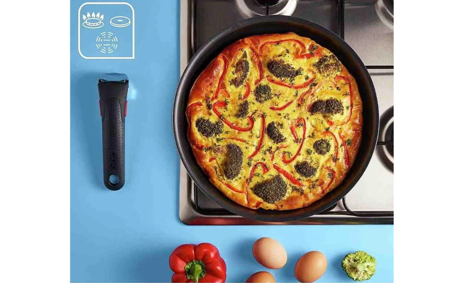 Tout ce dont vous avez besoin pour cuisiner en toute simplicité: une poignée amovible magique, deux poêles qui passent au four et au réfrigérateur*, et un design empilable qui ne prend pas de place.