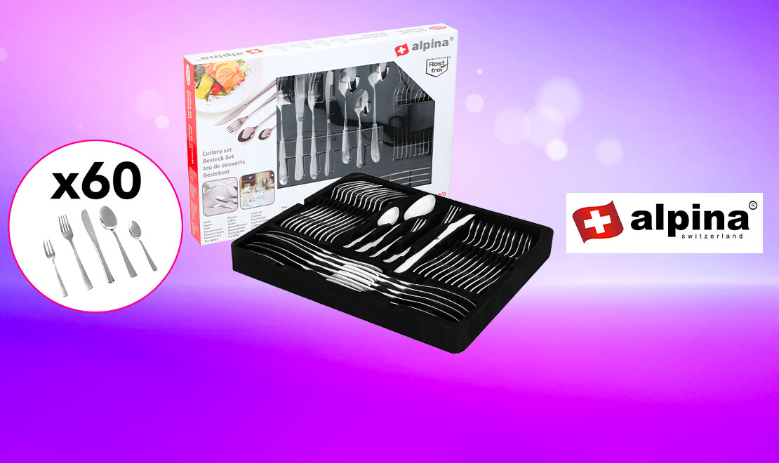- Flash DEALS - Set de 60 couverts ALPINA avec 70% de rabais