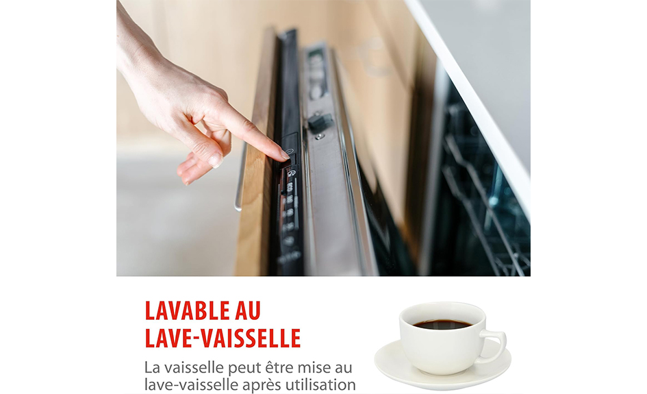 L'ensemble est à la fois compatible avec le lave-vaisselle et le micro-ondes.