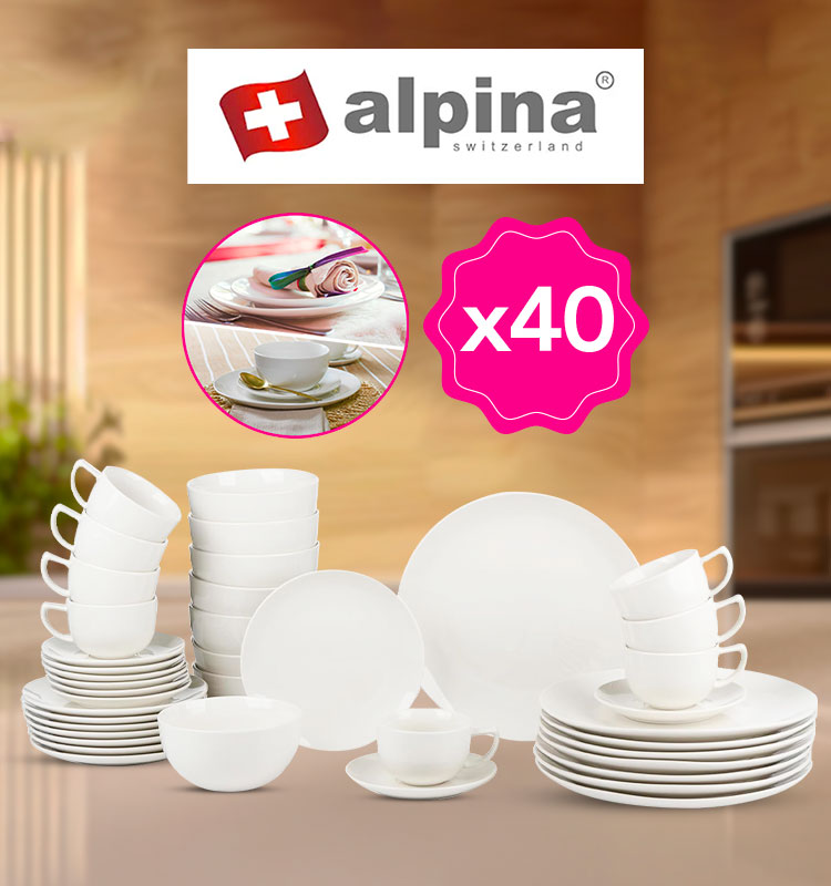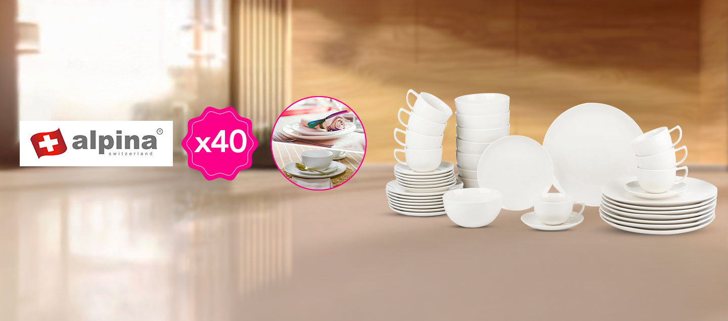 - Flash DEALS - Set de service à vaisselle 40 pièces ALPINA avec 66% de rabais