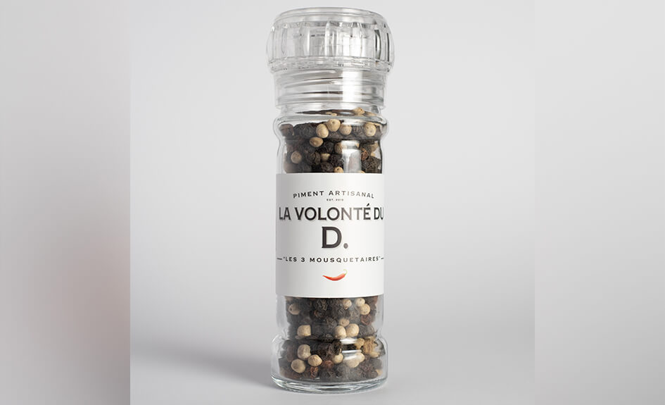 « Les 3 Mousquetaires », en moulin de 60 grammes se compose de poivre noir, rouge & blanc qui sauront accompagner vos plats au quotidien, en vous faisant voyager à travers les continents.