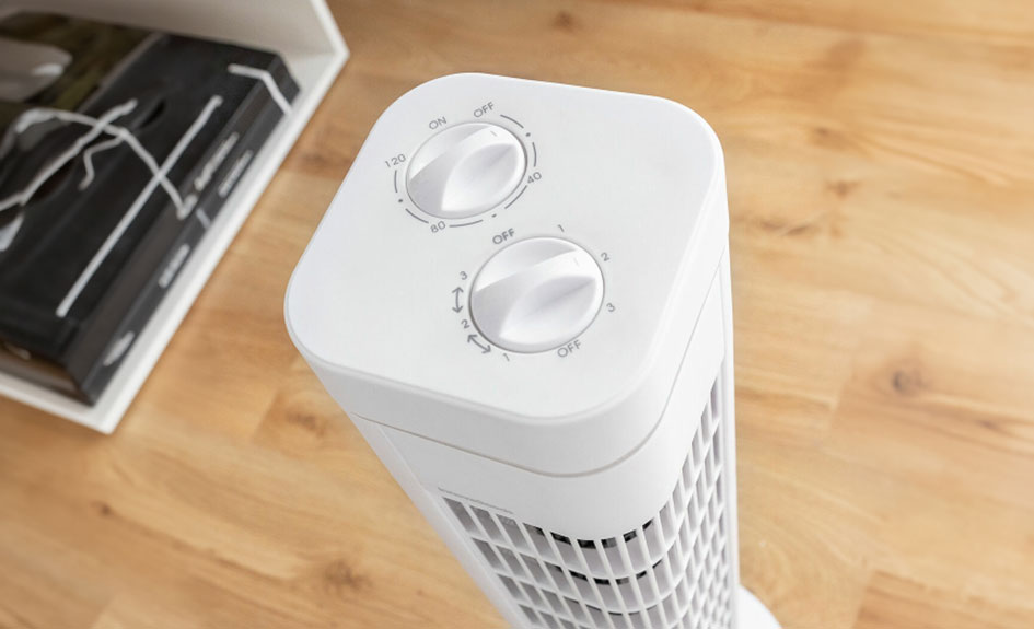 Le ventilateur colonne oscillant dispose d'une minuterie qui peut être programmée jusqu'à 2 heures.