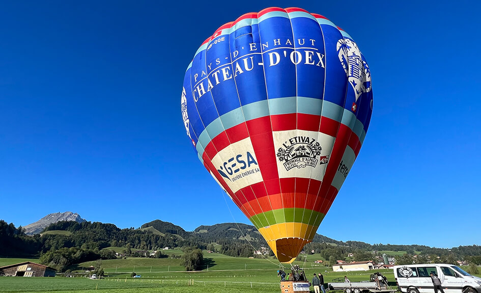Tous les jours de l’année, tôt le matin lorsque les conditions météorologiques sont favorables, les montgolfières prennent leur envol au départ de Château-d’Oex.